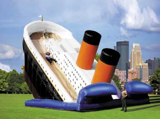 Measuring 33 feet in height and 50 feet in length, this awesome slide captures the feeling of the real giant. Adding to the realism of this ride are the famed triple screw propellers and rudder. One could almost believe the ship is sinking! Who will survive the slide down? This dual slide captures all the excitement of the famed ocean liner on it's maiden voyage!