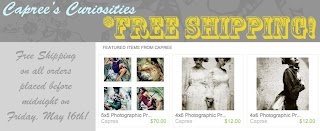 Capree's Curiosities is offering FREE SHIPPING on all orders placed before midnight on Friday, May 16th!