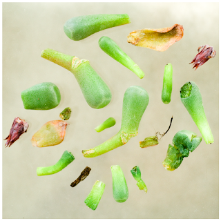As you might already know, I am a lover of the succulent. [Evidence here, here, and here.] Nothing makes me happier than those plump little plants. With the weather recently turning cold, I've had to move my big planters indoors so the little guys don't freeze. Yesterday, Wrigley decided that he likes succulents, too. Specifically, he likes those crunchy little baby toes, which are my favorite as well. Only he likes EATING them. In fact, the jerk bit off nearly ALL of my baby toes. And they were looking so healthy and beautiful!
