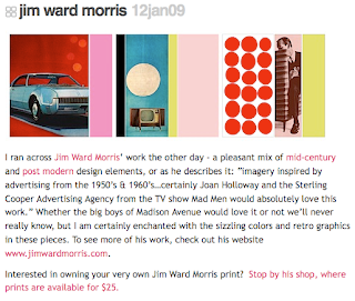 Jim Ward Morris brings some eye popping color to these pieces inspired by 1950's advertising.