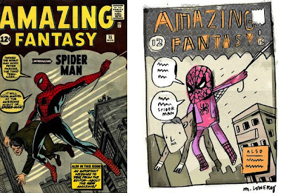 Mike Lowery covers Amazing Fantasy 15 - Original cover by Jack Kirby and Steve Ditko; Marvel 1962.