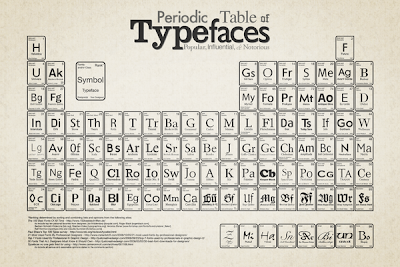 The Periodic Table of Typefaces is obviously in the style of all the thousands of over-sized Periodic Table of Elements posters hanging in schools and homes around the world. This particular table lists 100 of the most popular, influential and notorious typefaces today.