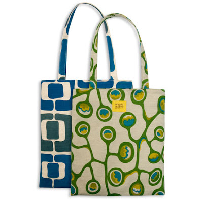 Constructed with super deluxe hand-printed fabric, the Linen Totes feature a linen (55%) / cotton (45%) blend, colorful lining, interior zipper pocket, secure snap closure and an Angela Adams logo label.