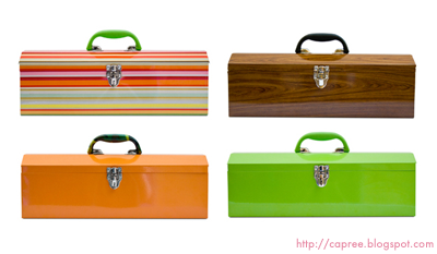 .How cool are these toolboxes from Alice Supply Co.?? Love the striped one and the wood one... and the lime one...