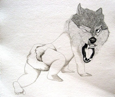 .Yep. That's a baby with a wolf head. I'm pretty sure he's winking, too.
