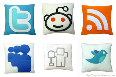 .Spending too much time social networking? Rest your weary head on one of these Social Pillows from Craftsquatch. Very funny, über geeky, socially pertinent, and high quality to boot! Made from super soft fleece and polyester filling, these pillows are perfect for unwinding after a highly productive day of 'connecting'.