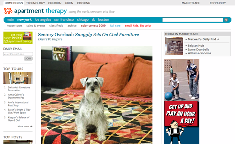 This is a bit of a random post, but I'm too proud not to share!  My sweet little Wrigley made it onto Apartment Therapy!  WHAT!!
